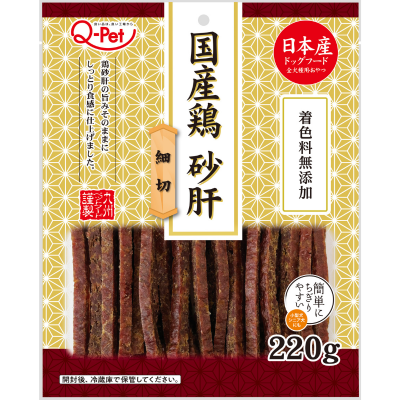 - 肉類(鶏砂肝、鶏ささみ肉)、植物性油脂、グリセリン、トレハロース、リン酸塩(Na、K)、pH調整剤、乳酸Na、保存料(ソルビン酸)、酸化防止剤(亜硫酸Na)、発色剤(亜硝酸Na)