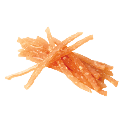 - 鶏ささみ肉、コーンスターチ、小麦粉、動物性油脂、大豆粉、カマンベールチーズ、グリセリン、D-ソルビトール、リン酸塩(Na、K)、乳酸Na、pH調整剤、酸化防止剤(亜硫酸Na、抽出ビタミンE、ローズマリー抽出物、ビタミンCナトリウム)、調味料、香料、着色料(二酸化チタン、黄4)